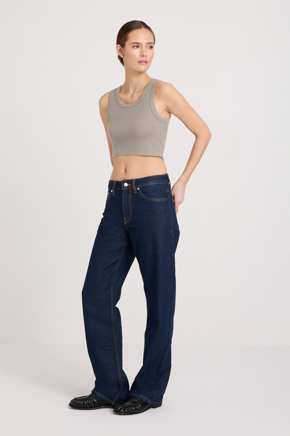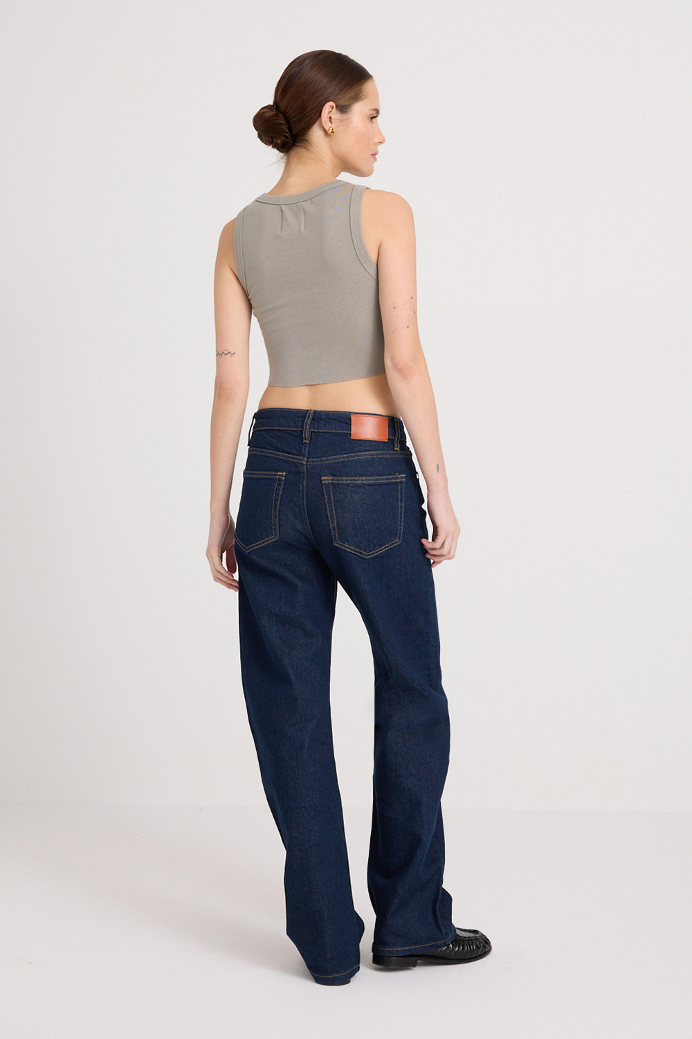 The Etta Tank is cut to be a fitted, cropped silhouette. We recommend taking your true size.