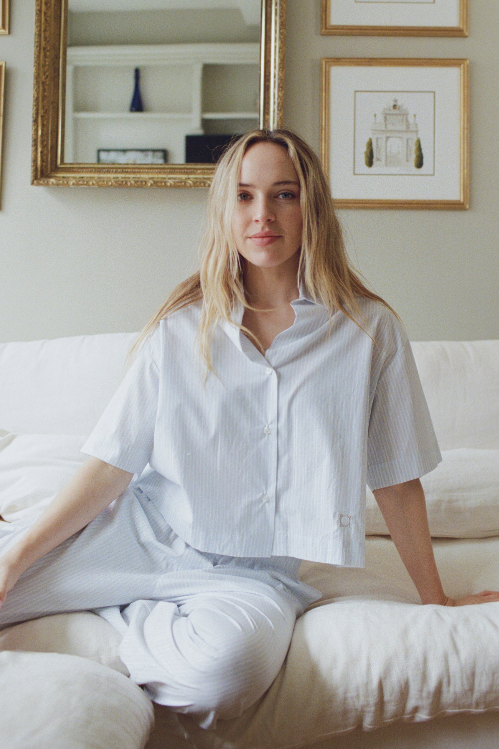 Meet Cooper—where comfort meets intention. Cooper is our short sleeve button-down shirt that blurs the line between sleepwear and ready-to-wear. Designed with a slightly cropped length and oversized, boxy silhouette, this style features a classic collar and button-down front. Style it as a set with the Kacey pants for elevated loungewear, or wear it on its own for an effortless, put-together look. It's crafted from a cotton blend with a touch of nylon for extra durability—soft to the touch with just the right amount of structure. A versatile staple that transitions seamlessly from rest to wear.