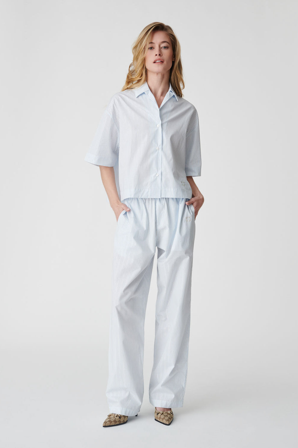 Meet Kacey—the pants that never make it back to your sister's drawer. Kacey is our straight-leg pant that blurs the line between sleepwear and ready-to-wear. Designed with a relaxed straight-leg silhouette, this style features side pockets, and a faux fly for a polished finish. Style it as a coordinated set with the Cooper Top for an elevated loungewear moment, or wear it solo for an effortlessly refined look. It's crafted from a premium cotton blend with subtle nylon for enhanced durability, creating a soft hand feel with just the right amount of structure. The pants you'll reach for again and again—if you can find them.